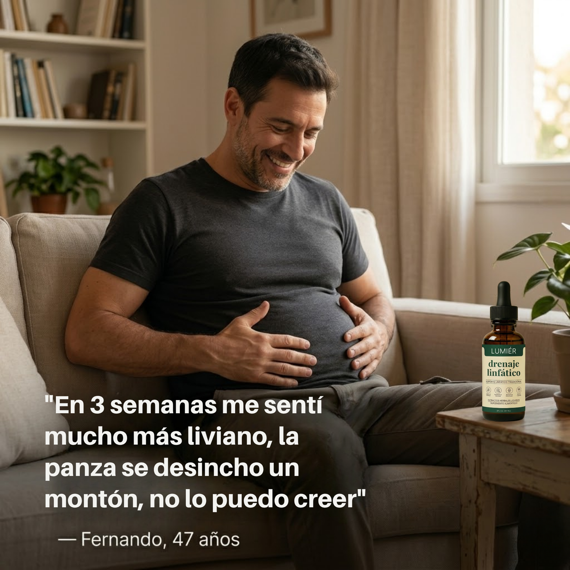 Probé mil cosas para la retención de líquidos y nada me daba resultados reales. Lumier® fue diferente desde la primera semana. La hinchazón bajó, la energía subió. Ya pedí mi segundo frasco.